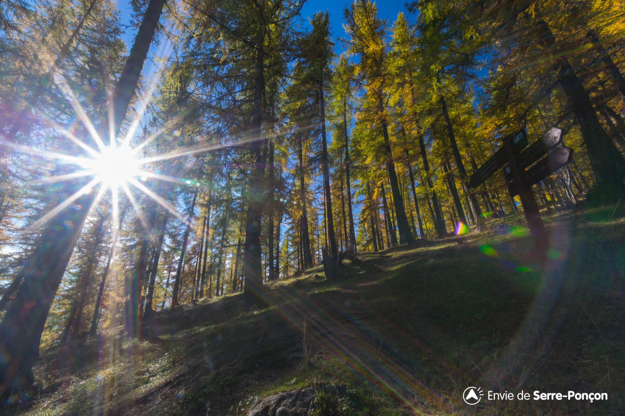Au parking de la fôret, prendre quelques instants pour lire le panneaux explicatifs sur la forêt communale d'Embrun et son mélèzin "Un mélézin de 646 ha ... l'un des plus beaux mélézins des Hautes-Alpes."